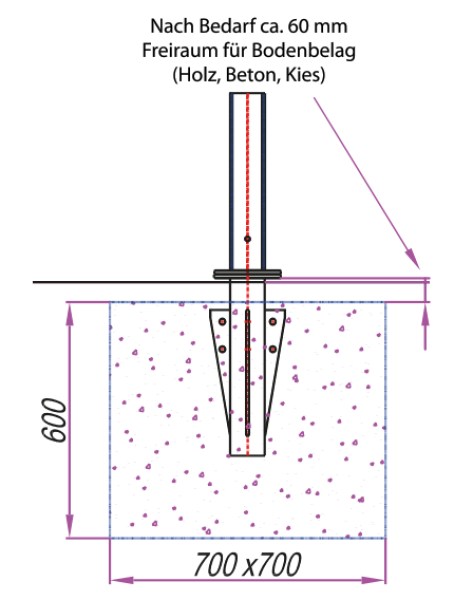 SBH 80: Spezial Bodenhülse aus verzinktem Stahl: Bodenhülse für Großschirme bis Mast Ø 80 mm: klappbar für leichtere Montage aus verzinktem Stahlrohr