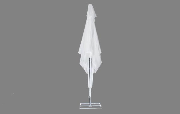 Die stabile Schirmkonstruktion besteht serienmäßig aus weiß pulverbeschichteten Aluminiumprofilen